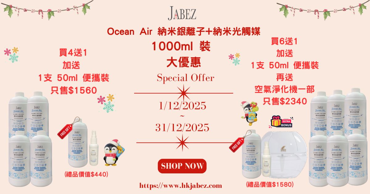 🛒凡購買JABEZ 【OCEAN AIR】納米光觸媒+納米銀離子雙效抗菌噴霧!
